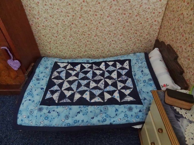 I finished the quilt I was making for Peggy Sue's bed today. The other beds I have are not suitable for the size of her room unfortunately so we have made do with the one she already has, which is still a nice wooden bed.